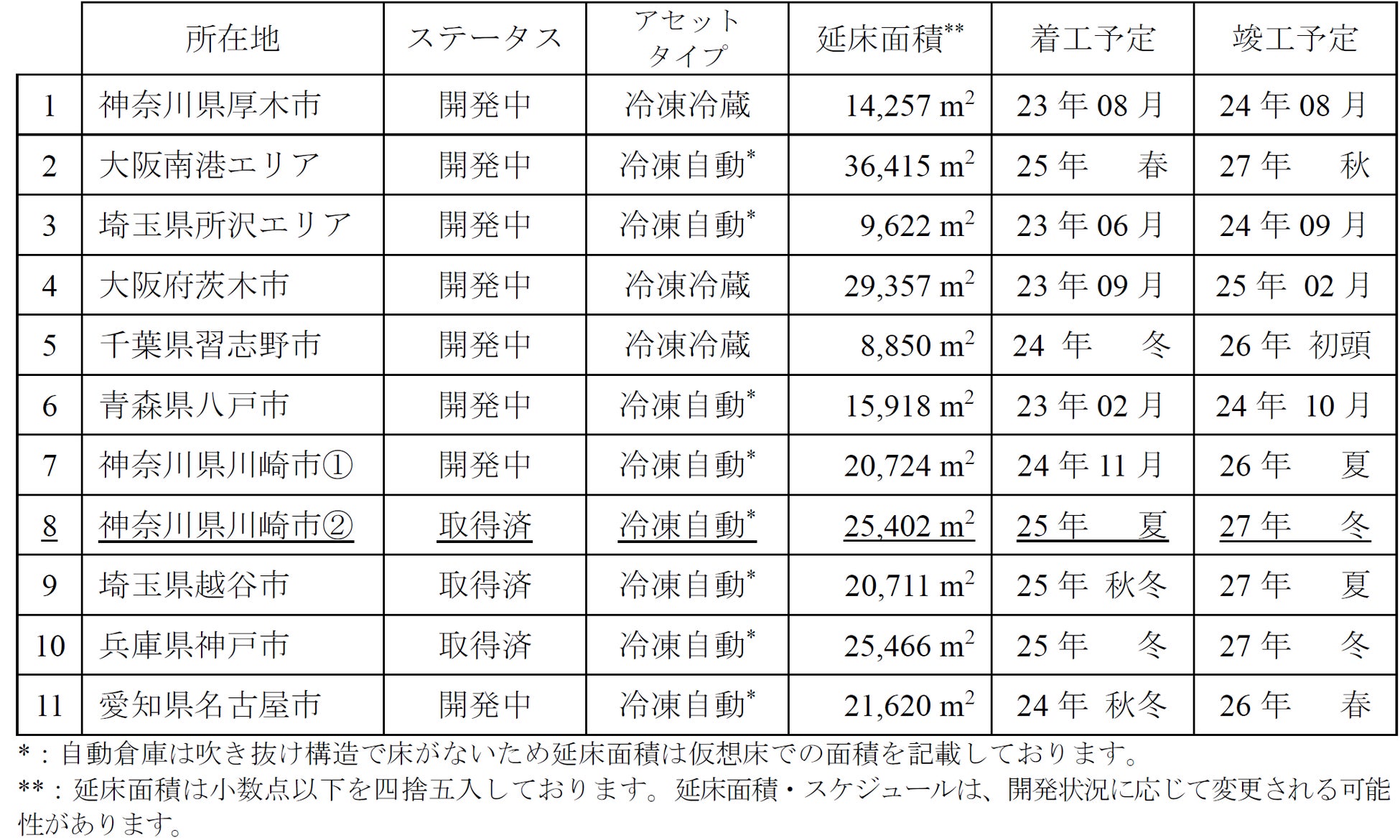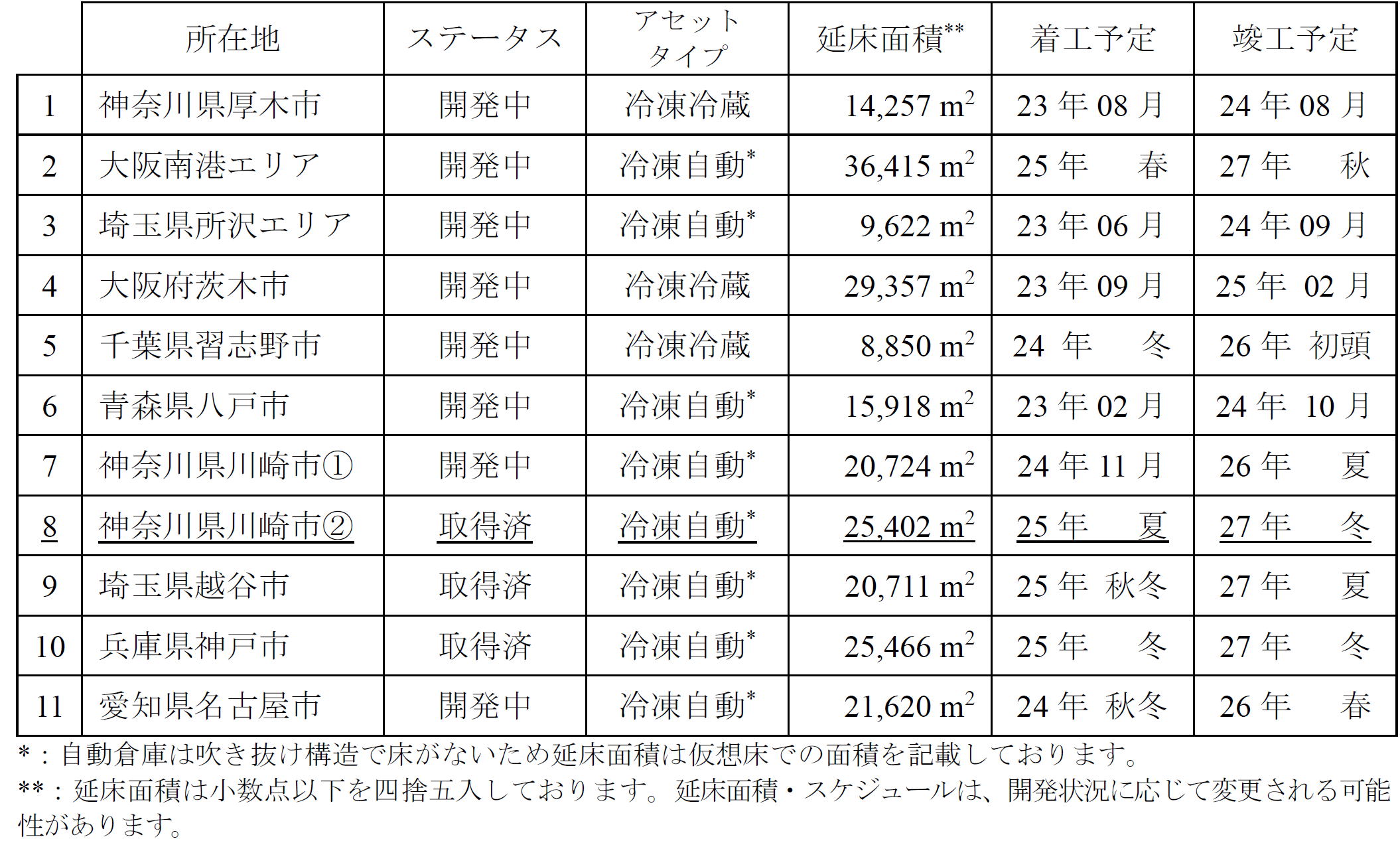 ■霞ヶ関キャピタル物流施設開発予定物件一覧