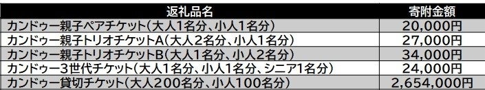 | カンドゥー貸切チケット(大人200名分、小人100名分) | 2,654,000円 |
