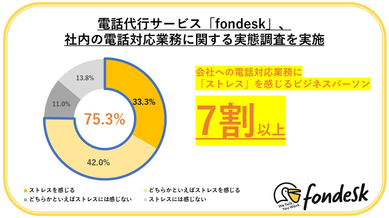 【電話代行サービス「fondesk」、新年度に向けた「TELハラ」最新実態調査を実施】会社への電話対応業務にストレスを感じる人は7割超!そのうち6割が「自身が電話を受ける事が必要」と義務感を抱える結果