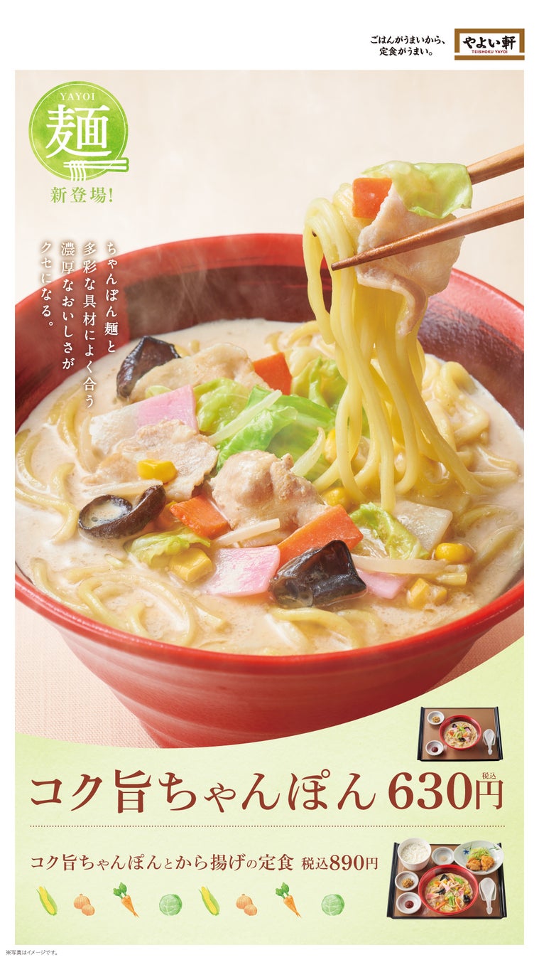 「やよい軒」初の“ちゃんぽん”登場!豚と鶏の濃厚白湯ガラスープ 『コク旨ちゃんぽん』630円 3月18日(金)新発売