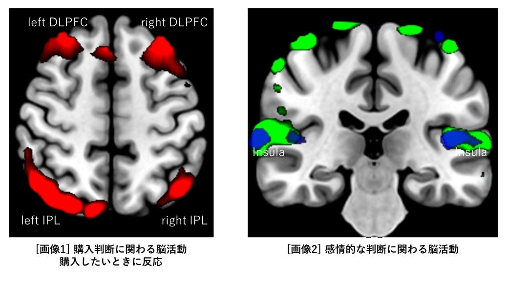 今回の実験では、ショート動画視聴時に「購入したい」と思った(ボタンを押した)際に、モノを買うという判断に関わる部位であるDLPFC(外側背側前頭前野)、および、IPL(下頭頂小葉)での脳活動が確認されました。