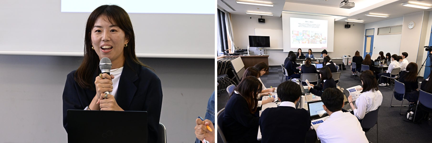 「高校生のための日傘」をテーマに、2023年10月より、青山学院高等部との産学共同授業がスタート。27名の生徒が参加し、プラザスタイルのバイヤーやTBSのデザイナー、アナウンサーらが講師となって、プロダクトデザインやマーケティングに関する全8回の授業を実施。グループディスカッションやプレゼンテーションを通して、各グループが自分たちの「欲しい!」と思う日傘を提案しました。