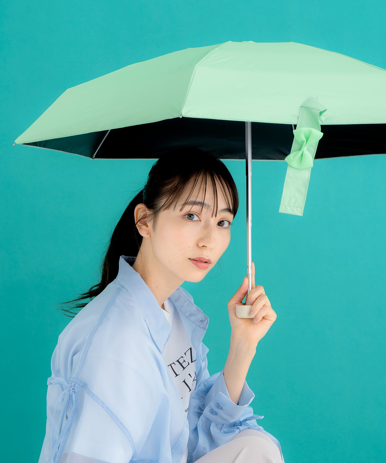 全カラーUVカット率&遮光率100%、UPF50+の生地を使用しており、暑い夏を快適に過ごすための遮熱性にも優れています。また裏面をブラックに統一することで地面からの照り返しによる眩しさも軽減。高い撥水性も備わっているので晴雨兼用傘としてもお使いいただけます。