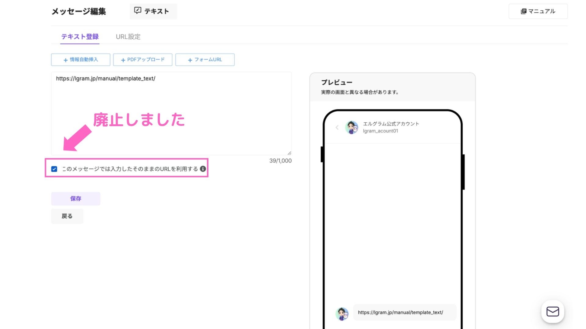 URL分析機能の導入により、従来の「そのままのURLを利用する」機能を廃止いたしました。