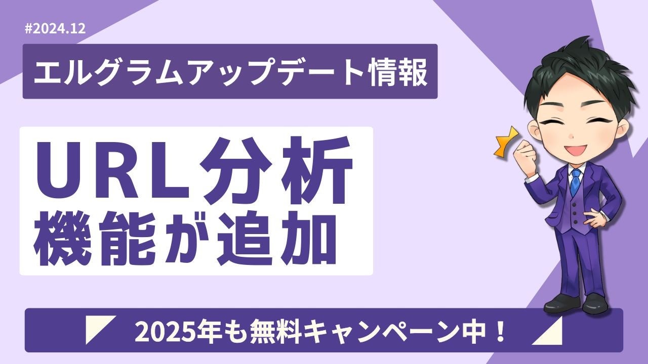 株式会社ミショナ(代表:鈴木隆宏)が2024年12月26日(木)に実施したエルグラムのアップデートにより、URL分析機能が新たに搭載されました。