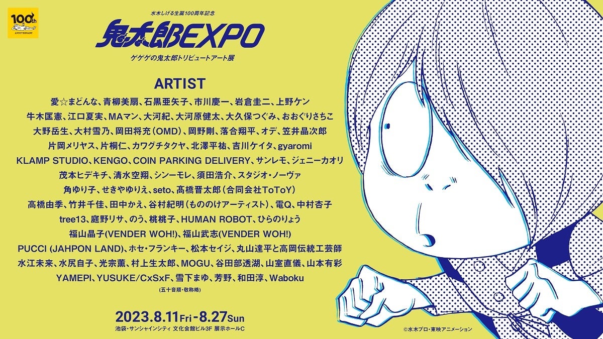 『ゲゲゲの鬼太郎 トリビュートアート展 鬼太郎EXPO』を2023年8月11日(金・祝)~8月27日(日)、池袋・サンシャインシティ 文化会館ビル3F 展示ホールCにて開催いたします。