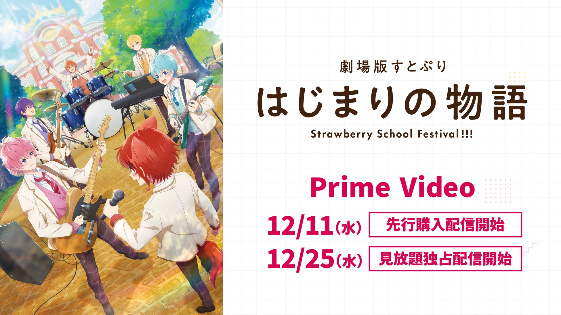 2024年7月19日(金)より公開し、興行収入7億円を超える大ヒットを収めた『劇場版すとぷり はじまりの物語~Strawberry School Festival!!!~』は、2024年12月11日(水)にAmazonプライム・ビデオで先行購入配信、さらに2024年12月25日(水)より見放題独占配信をすることが決定いたしました。