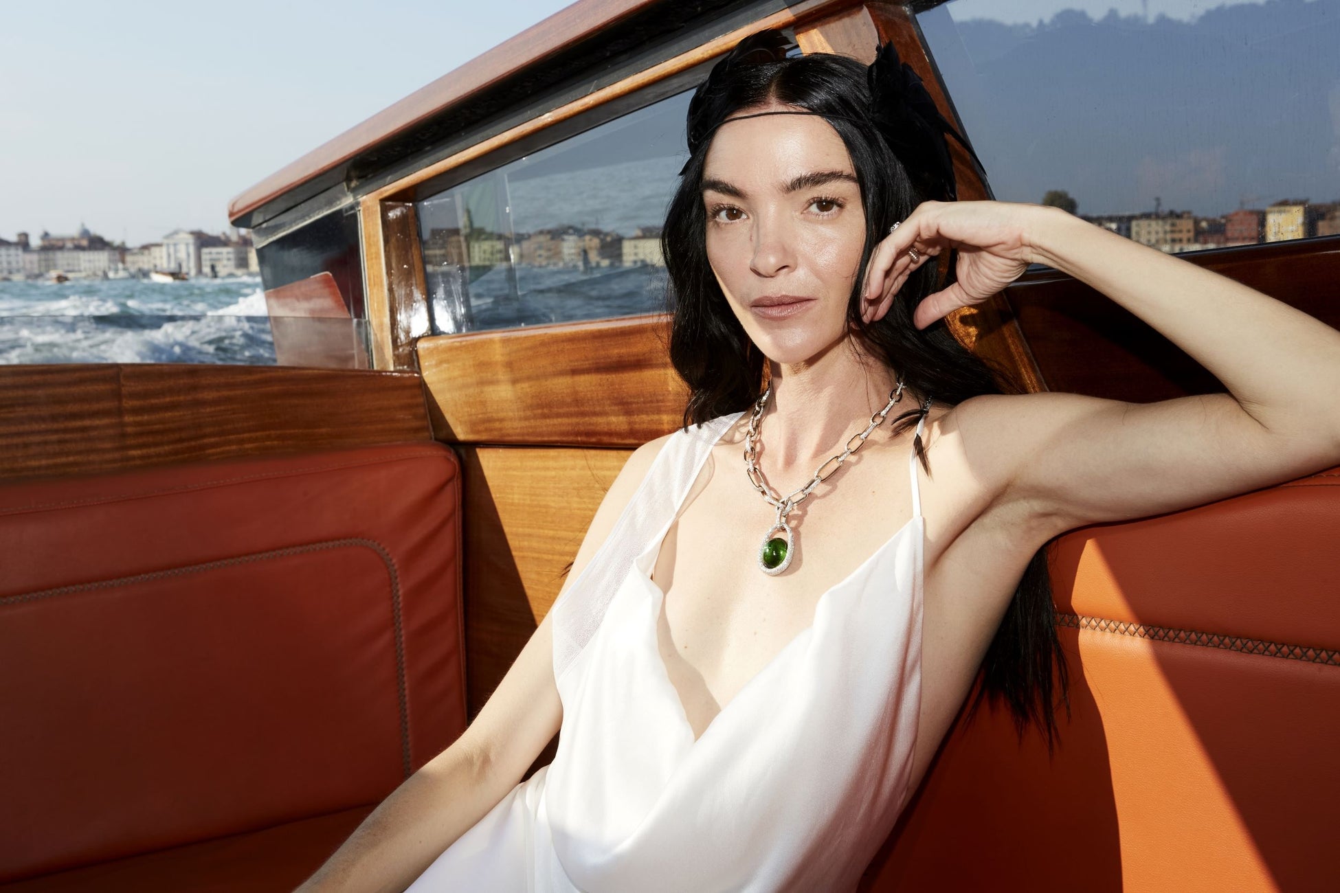 [2024年8月28日/ベニス]世界的トップモデルのマリアカルラ・ボスコーノが、第81回ベネチア国際映画祭オープニングのレッドカーペットにて、ダイヤモンドが煌めくホワイトゴールドリンクにカボションカットされた53カラットのグリーントルマリンがあしらわれたプリンセスネックレスをまとい登場しました。彼女はさらに「イコニカ」と「ヌード」のリングを合わせています。