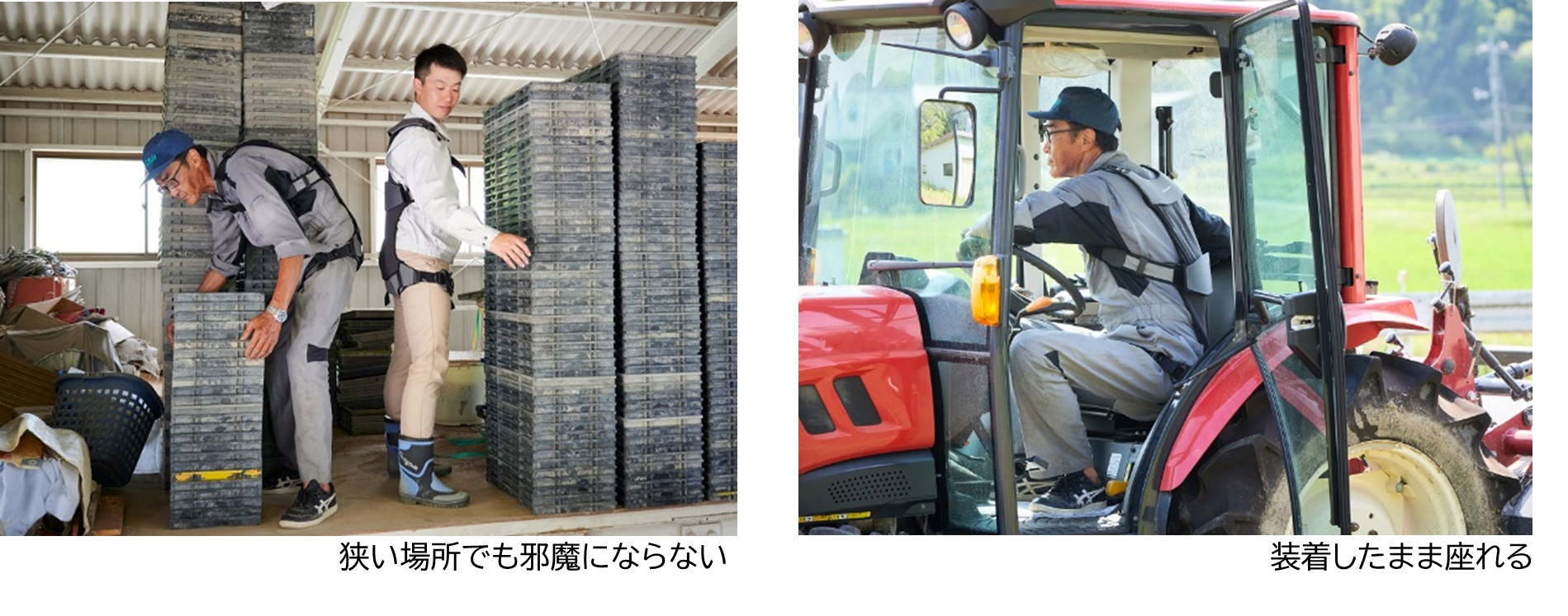 当社オリジナルの空気圧式人工筋肉と特殊高反発ゴムを用いて持ち上げ動作や中腰姿勢をアシスト。軽量かつ柔軟性を実現した無電力無電動のサポートウェアです。