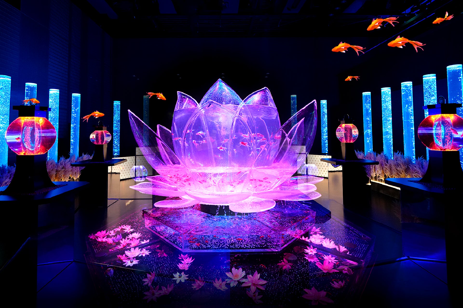 金魚泳ぐ水槽作品を光・香・音で演出する没入型エンターテインメントアート