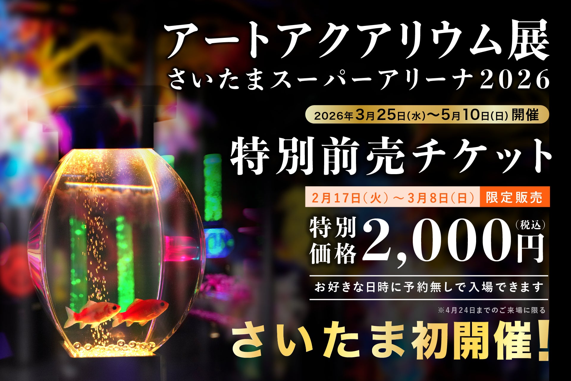 アートアクアリウム展 さいたまスーパーアリーナ2026チケット販売スタート お得で便利な特別前売チケット先着5,000枚発売決定!