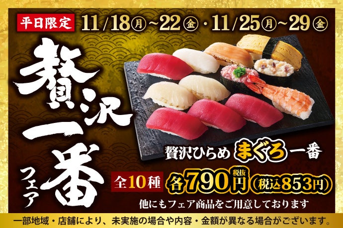 KOZOホールディングス株式会社の子会社である株式会社小僧寿しは、持ち帰りすし店「小僧寿し」にて、11月18日(月)~22日(金)、25日(月)~29日(金)の期間限定で『贅沢一番フェア』を開催します。