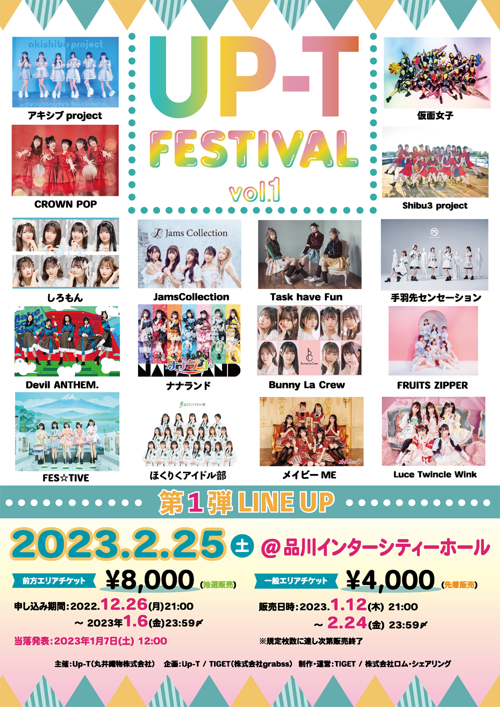 2023年2月25日に開催されるUp-Tが手がけるアイドルフェス「UP-T FESTIVAL vol.1」に出演のアイドル LINE UP第1弾を公開いたします。