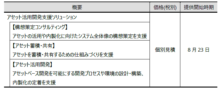 ■「アセット活用開発支援ソリューション」の価格および提供開始時期