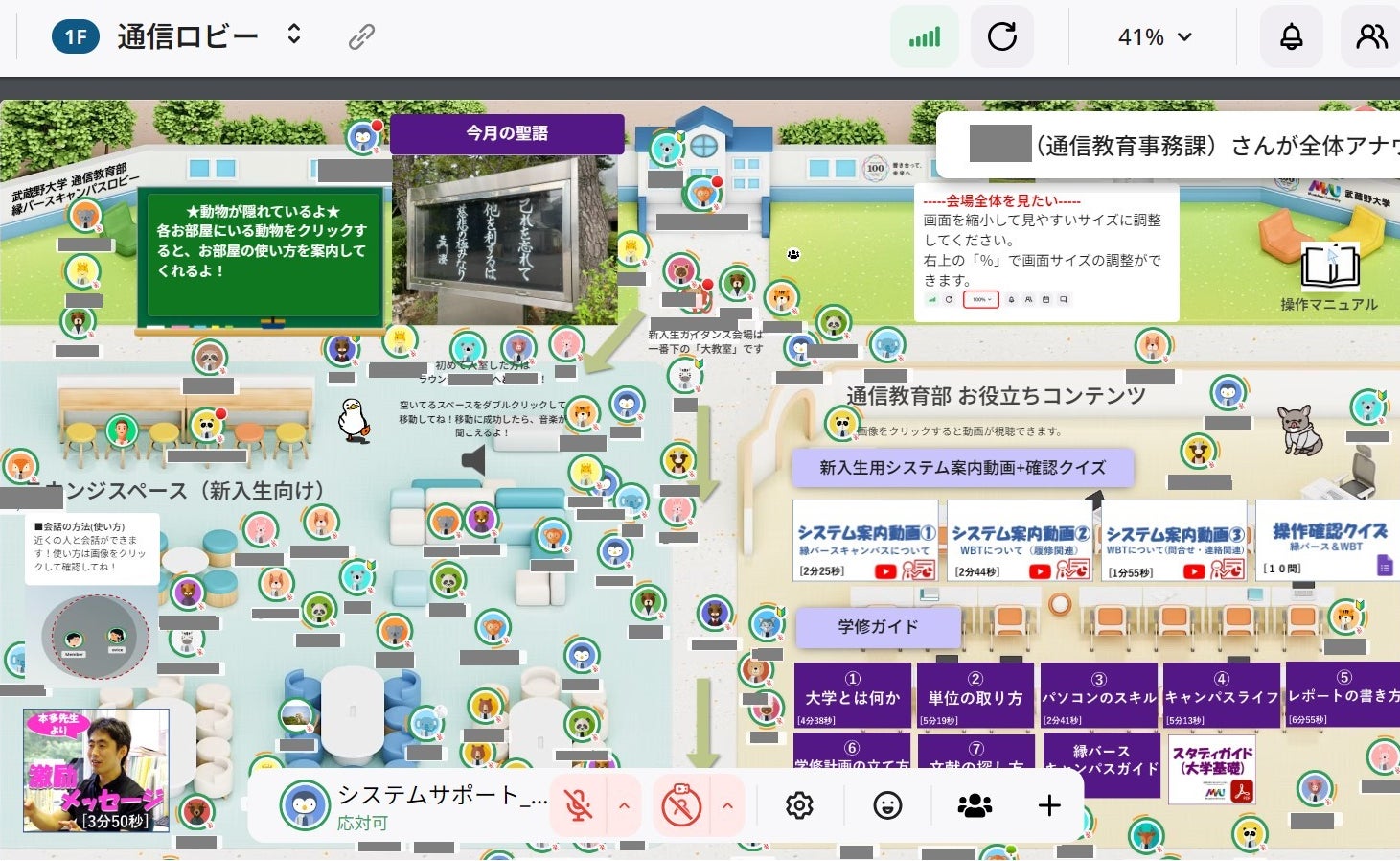 通信教育部の「キャンパス」が開設されました。トライアル期間を経て、国家試験の受験勉強会、卒業生・先輩へのキャリア相談会、教員のオフィスアワーなどで活用して参ります。ふらりと「入構」して、新たな出会いも紡がれます。将来的には縁バースキャンパス上で、学生同士、在学生と卒業生、国内と海外など、空間の制限を超えた交流やプロジェクトミーティングなどの可能性も拡がりそうです。今後の展開をお楽しみに。