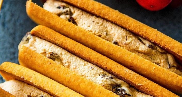 発酵バターをたっぷり生地に使用したレーズンバターサンド「トロバタ」。クッキーとクリームのバランスがよく、最も美味しく感じられるよう、クリームを限界ギリギリの量まで挟んだ逸品です。