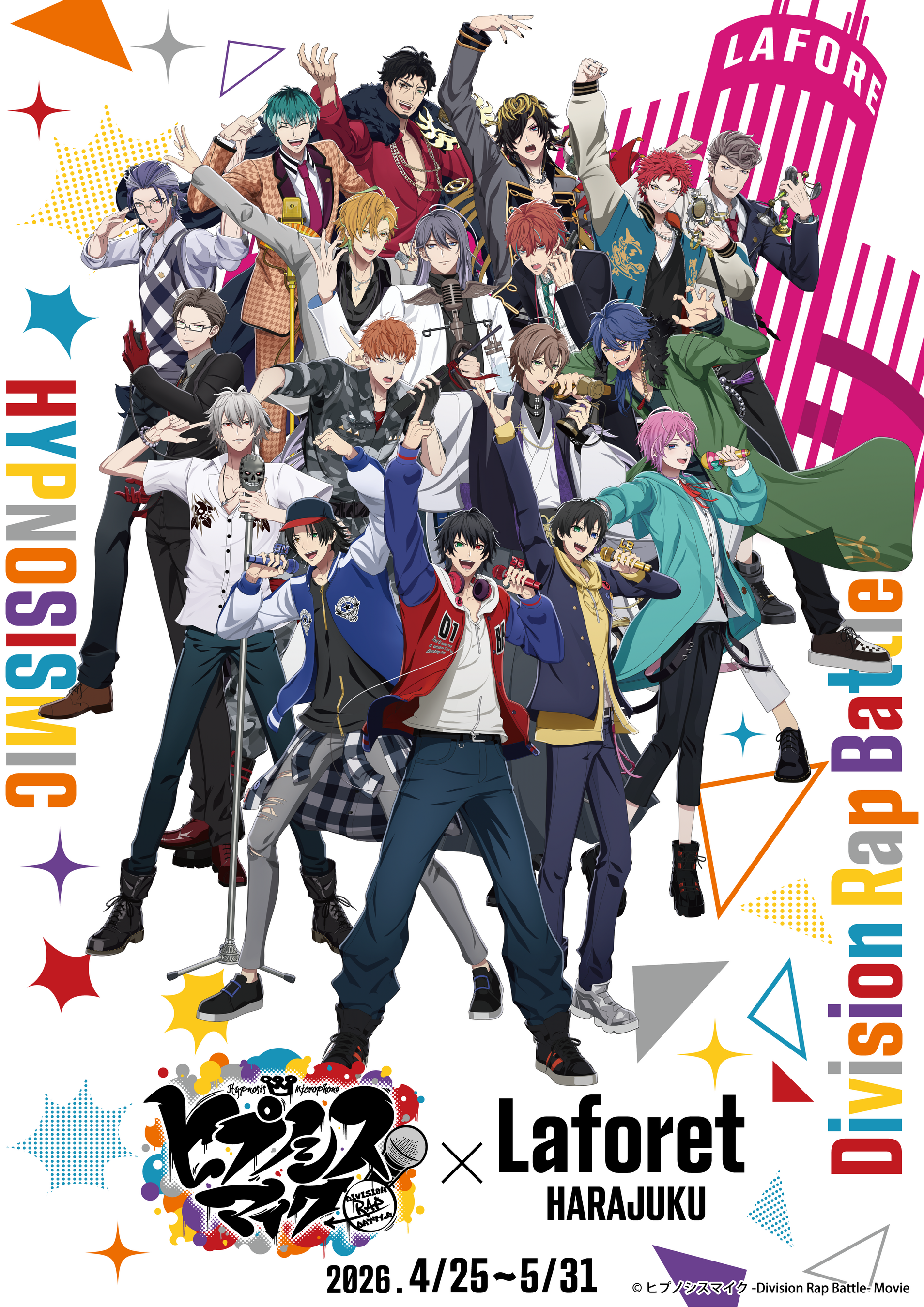 株式会社エムアップホールディングス(所在地:東京都渋谷区、代表取締役:美藤 宏一郎)の連結子会社であるキャラクターやアニメIPを活用したコンテンツ配信やコラボ実施を手掛ける株式会社Creative Plus(所在地:東京都渋谷区、代表取締役:加藤 周太郎)は、音楽原作キャラクターラッププロジェクト『ヒプノシスマイク -Division Rap Battle-』と、森ビル株式会社(所在地:東京都港区、代表取締役社長:辻󠄀 慎吾)が運営する商業施設「ラフォーレ原宿」とのコラボレーション企画「映画『ヒプノシスマイク -Division Rap Battle-』× Laforet HARAJUKU」を2026年4月25日(土)より5月31日(日)まで開催することを決定いたしましたので、下記の通りお知らせいたします。