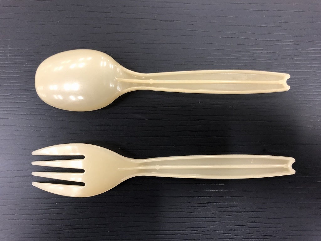 今季からは、当チェーンで使用を開始した「ライスレジン🄬」配合カトラリー向けの非食用米の供給を本格的に開始します。モスファーム熊本で生産する非食用米を、株式会社バイオマスレジン熊本(熊本県水俣市)で製造する「ライスレジン🄬」の原料にし、これを当チェーン向けカトラリーで使用します。