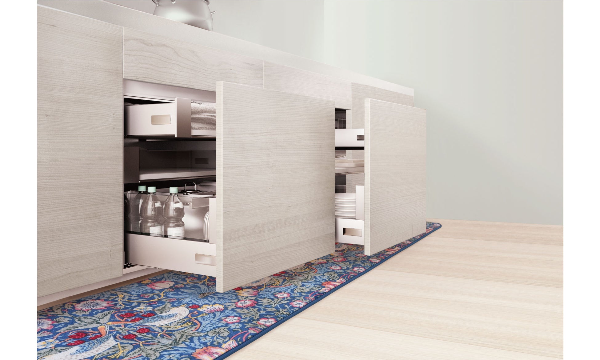 厚み約1㎝と薄手なので扉の開閉や引き出しの開閉を邪魔せず、スムーズに使っていただけます。