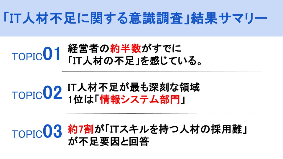 ■TOPIC01:経営者の約半数がすでに「IT人材の不足」を感じている