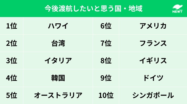 株式会社令和トラベル(本社:東京都渋谷区、代表取締役:篠塚 孝哉)が運営する、かしこい、おトク、旅行アプリ『NEWT(ニュート)』は、全国の男女を対象に「海外旅行に関する意識調査」を実施しました。