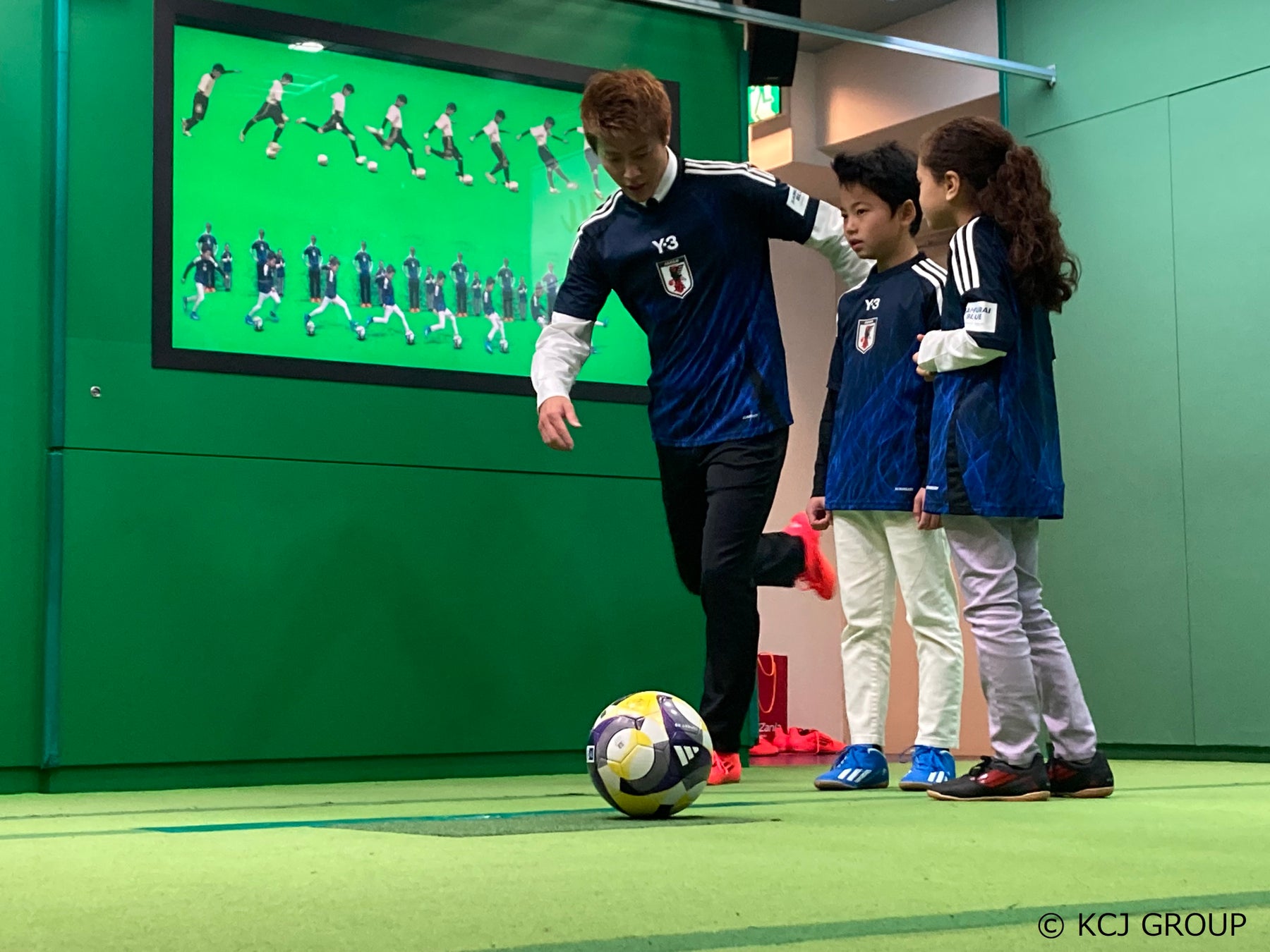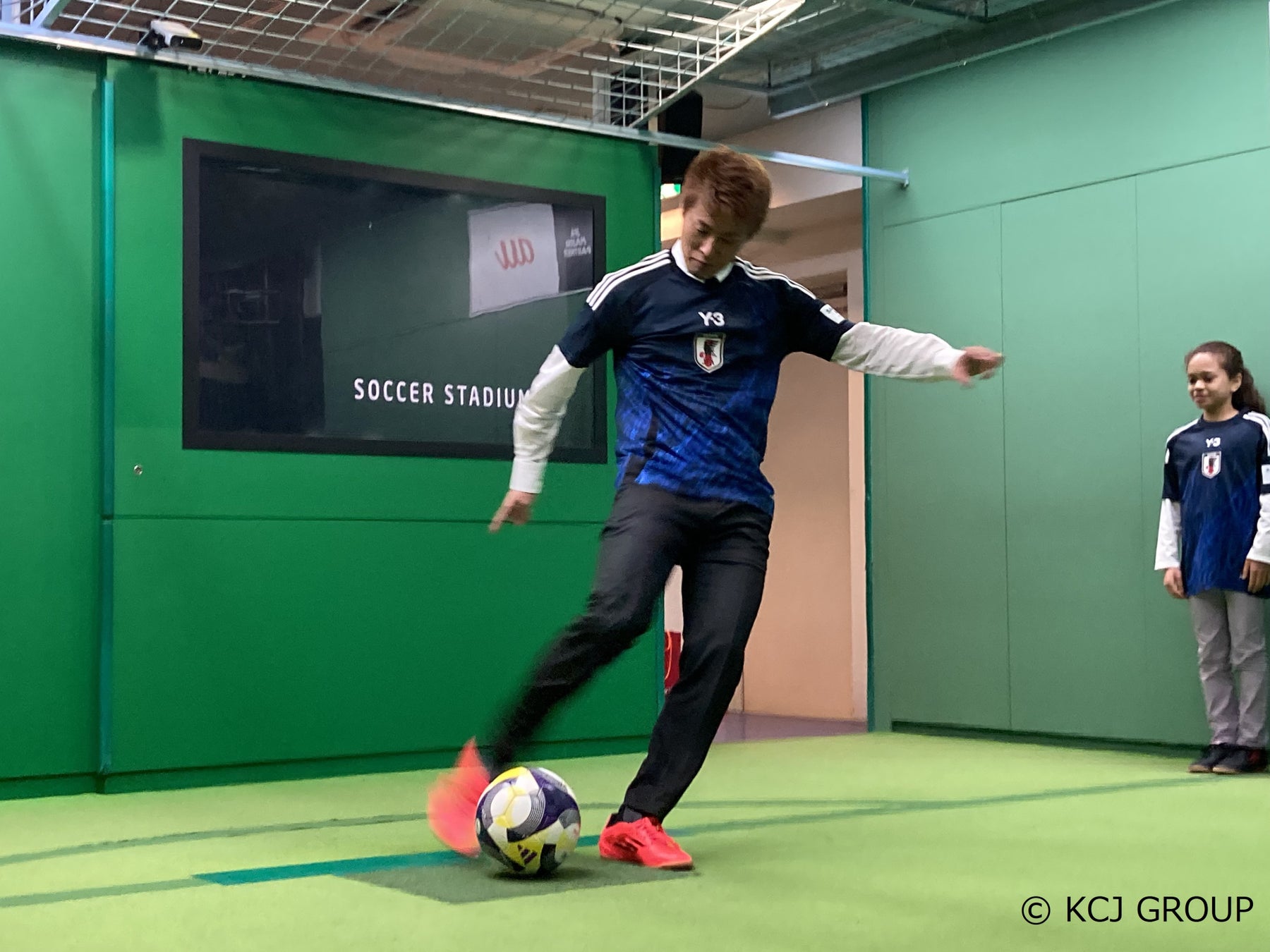 新しい「サッカースタジアム」では、こども達が日本代表のユニフォームを着てシュートをすることができるので、とてもワクワクしていただけるとともに、複数台のカメラによって撮影された動画を見ながら自分のフォームを客観的に確認できるので、こども達にとって新しい気づきの機会になると思います。