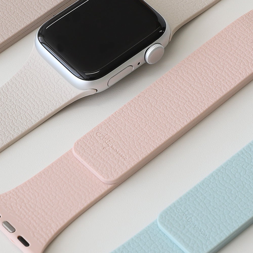 オトナかわいいがコンセプトのブランド「Mignonne」から、シュリンクレザーを模したミニマルなデザインが特長のマグネティックシリコンバンド「OWL-AWBSMIN07」シリーズが発売。