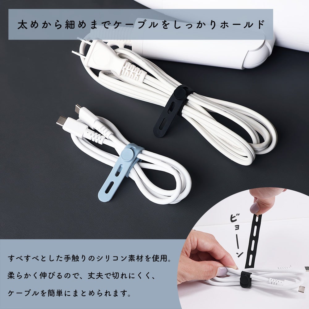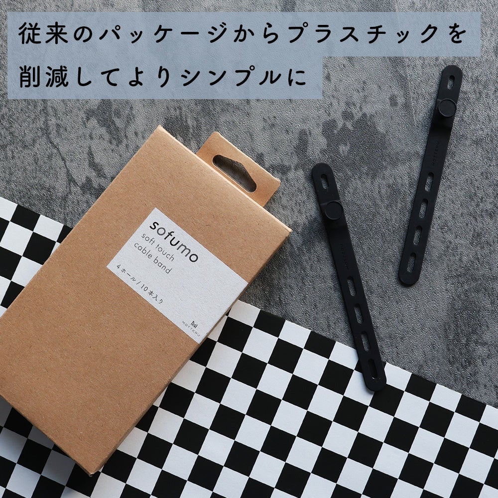 sofumo ソフトタッチ シリコンケーブルバンド 10本セット 4つ穴タイプ 繰り返し使える 全3色 (MOT-CBBAND05)