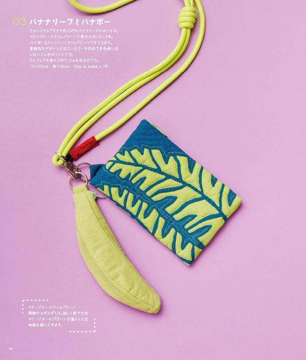 使いやすい定番の四角いポーチから、ハワイアンモチーフの愉快なポーチまでバリエーション豊かな53作品を掲載。遊び心をたっぷり詰め込んださまざまなポーチ作りを楽しめます。