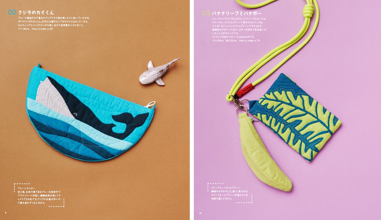 PROLOGUE 色とデザイン/スマイルポーチ、クジラのカイくん、バナナリーフとバナポー、ブルーブルー、ハートのモンステラ、空飛ぶマンタ、トライバルマンタのトートバッグ、踊るモンゴウイカ、スカシカシパン、ころんとポーチ、ちびっとバッグ、ジャングルポーチ、キルトでピクト、丸で北斎バッグ、丸に波、丸に波と勇魚、トライバル・キーケース、タパ柄ソーイングケースとニードルブック、エンベロープ、バッグの中からあら!バッグ、やさしいトライバルのフォリオ、パソコンも連れてって、ウルとラウハラのタペストリー、ウルとラウハラのバッグ&ポーチ、チューベローズのタペストリー、チューベローズのランチボックス/ポーチの中身はなあに、材料について/Lesson1 ハワイアンキルトの基本、Lesson2 波のポーチを作ってみましょう/作品の作り方、実物大型紙