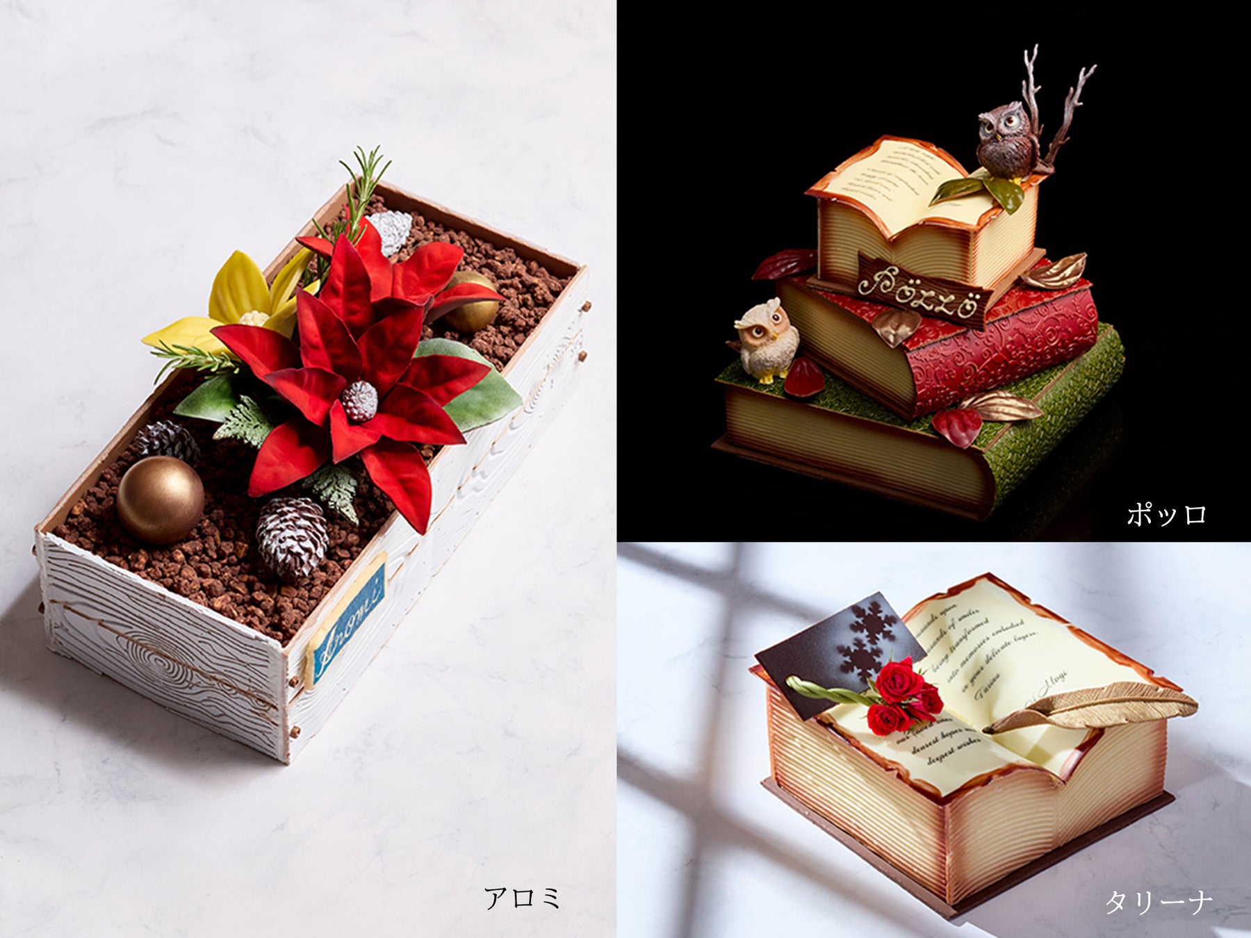 京王プラザホテルのクリスマスケーキ2024“Christmas Window” 窓際を彩るポインセチアの新作ケーキや、窓辺での読書を連想させる本型のケーキなど