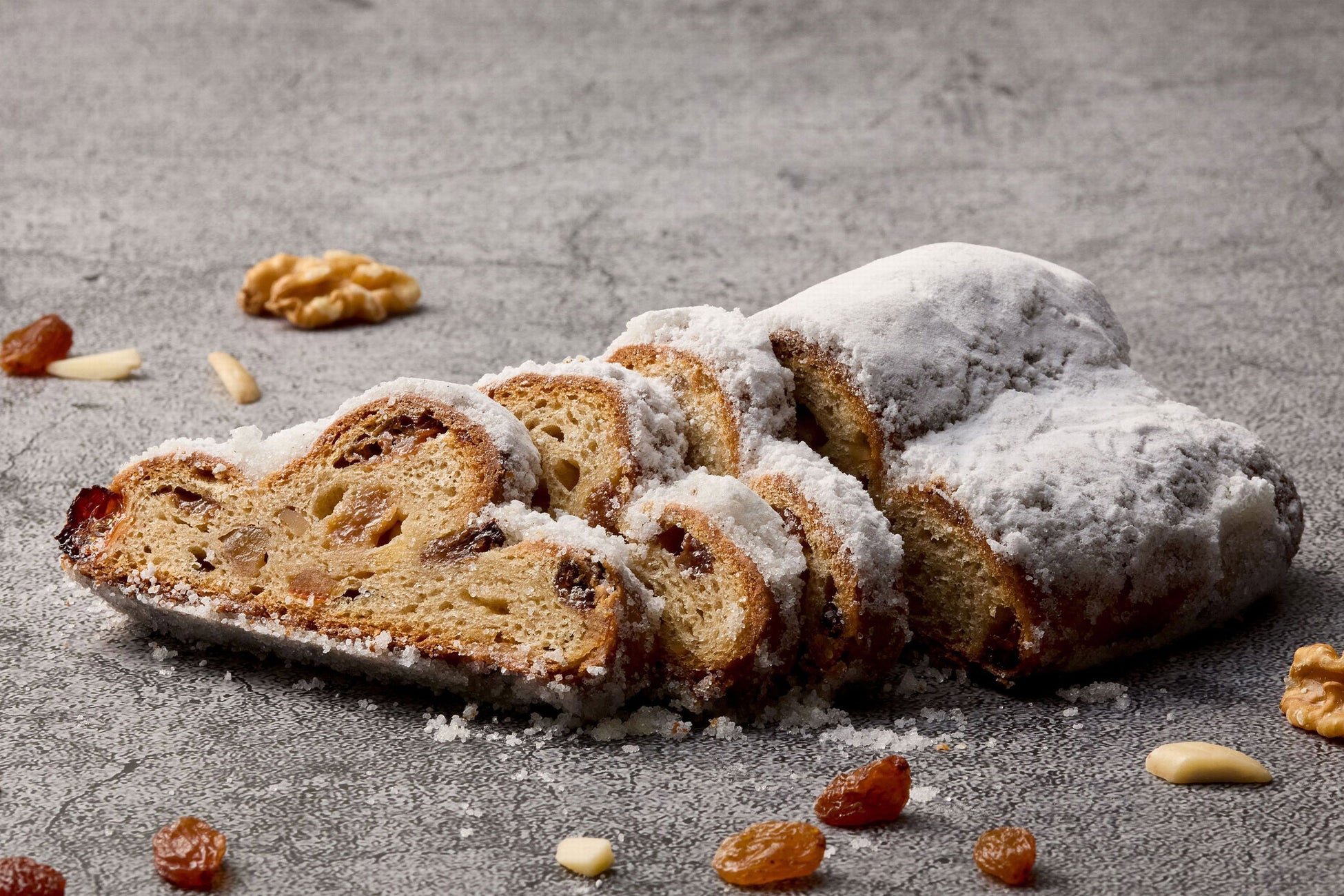 たっぷりとバターを使用したしっとりとした生地に、ラム酒に漬けたドライフルーツやナッツが詰め込まれています。京王プラザホテル初代シェフから受け継がれる、ドイツ生まれのクリスマス伝統菓子です。