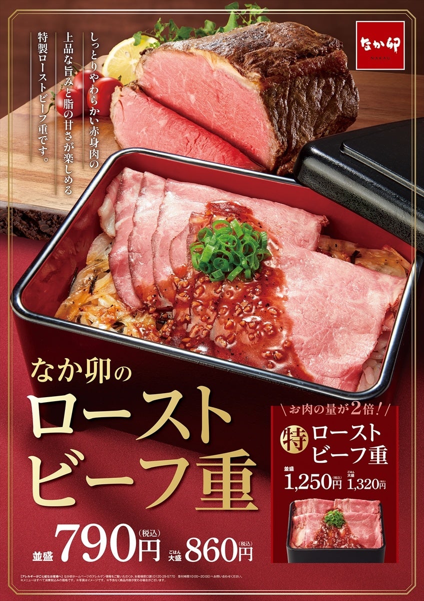 ぜひこの機会に、お近くのなか卯やご家庭で、贅沢な味わいの「ローストビーフ重」をお楽しみください。