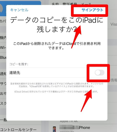 Step1:iPadの「設定」アプリ‐「Apple ID」へ進み、「サインアウト」をタップします。