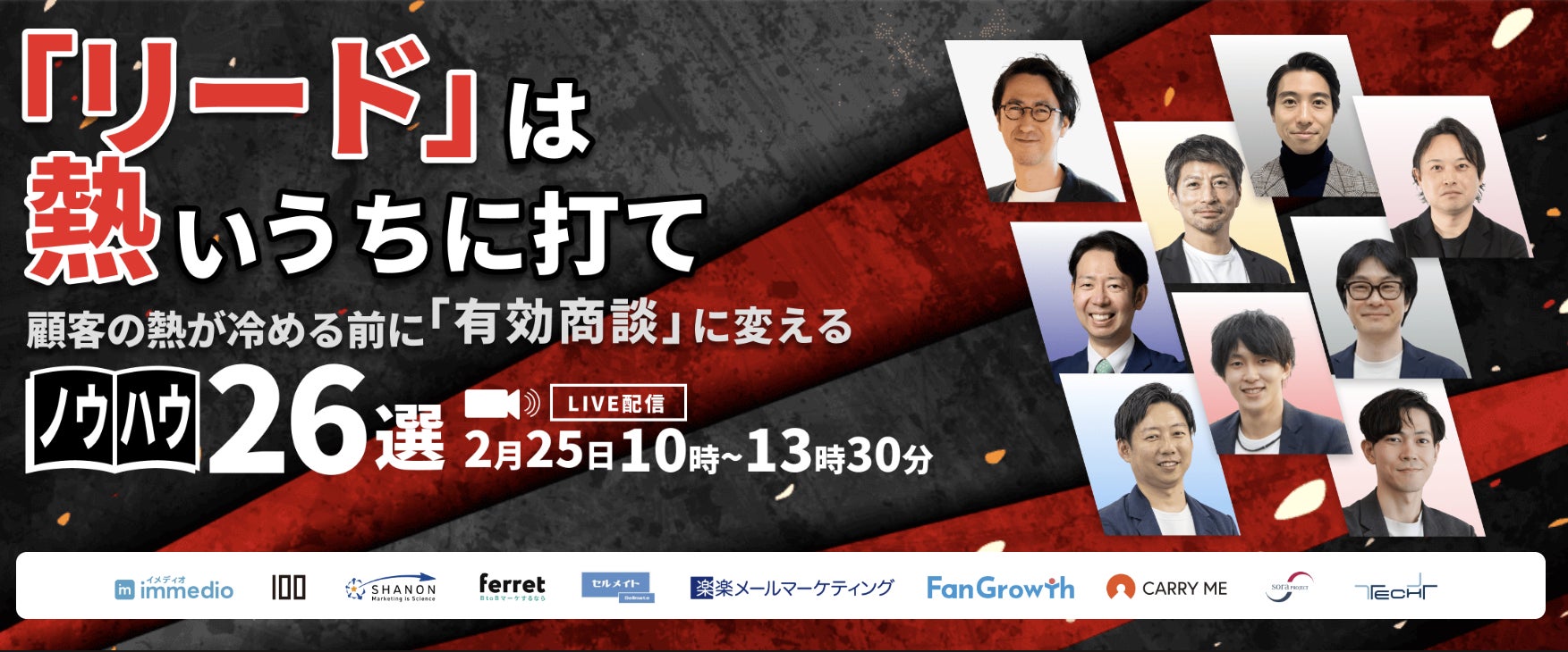 【2/25開催】「あとで追客」はもう古い。リードの熱量を逃さず有効商談に変えるノウハウ26選を公開。immedioなど9社が集結するカンファレンスに登壇!