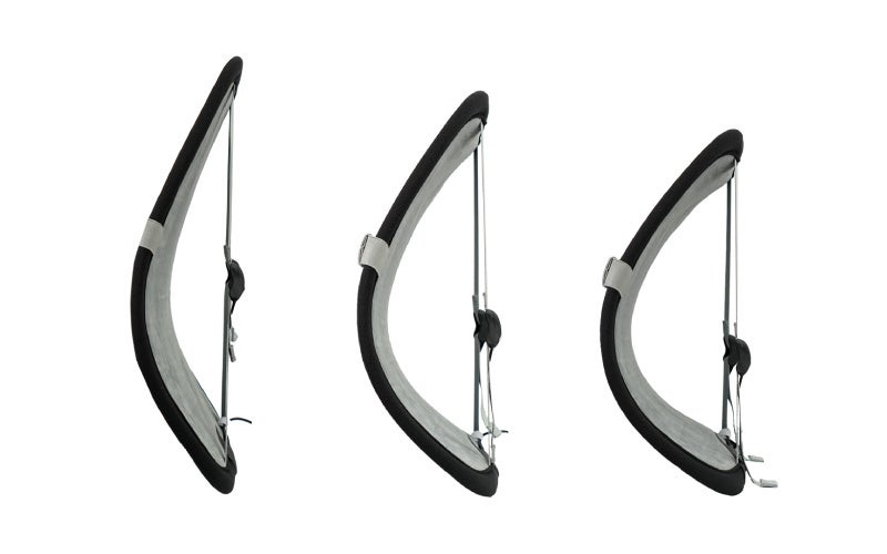 車のシートやイスにセットし、USBケーブルをモバイルバッテリーなどに差し込むと背中に当たる部分の2か所のヒーターが作動し温まります。ヒーター温度は約40度。弓なり形状で腰にフィットします。ランバー調整ベルトでしなり具合の調整が可能。さわり心地が良いコーデュロイ生地を採用。