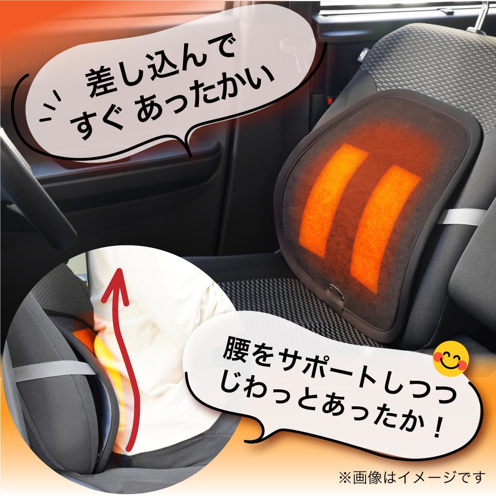 本製品はヒーターを搭載した車やイスで使えるランバーサポートです。