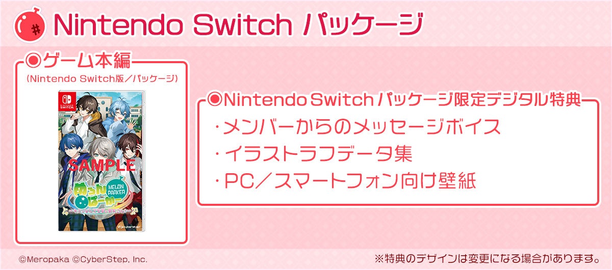 ダウンロード版に加えて、限定グッズが同梱された「限定グッズ入りボックス」とゲーム本編とデジタル特典が封入された「Nintendo Switchパッケージ版」も発売となっています。