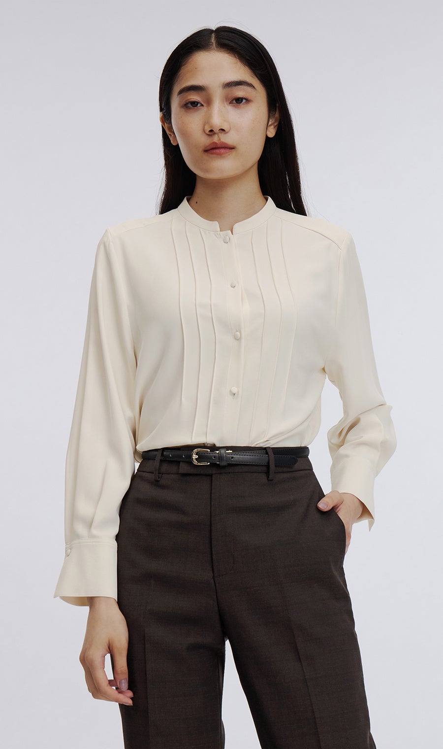デザイン:①バンドカラーピンタックブラウス ②ボウタイブラウス