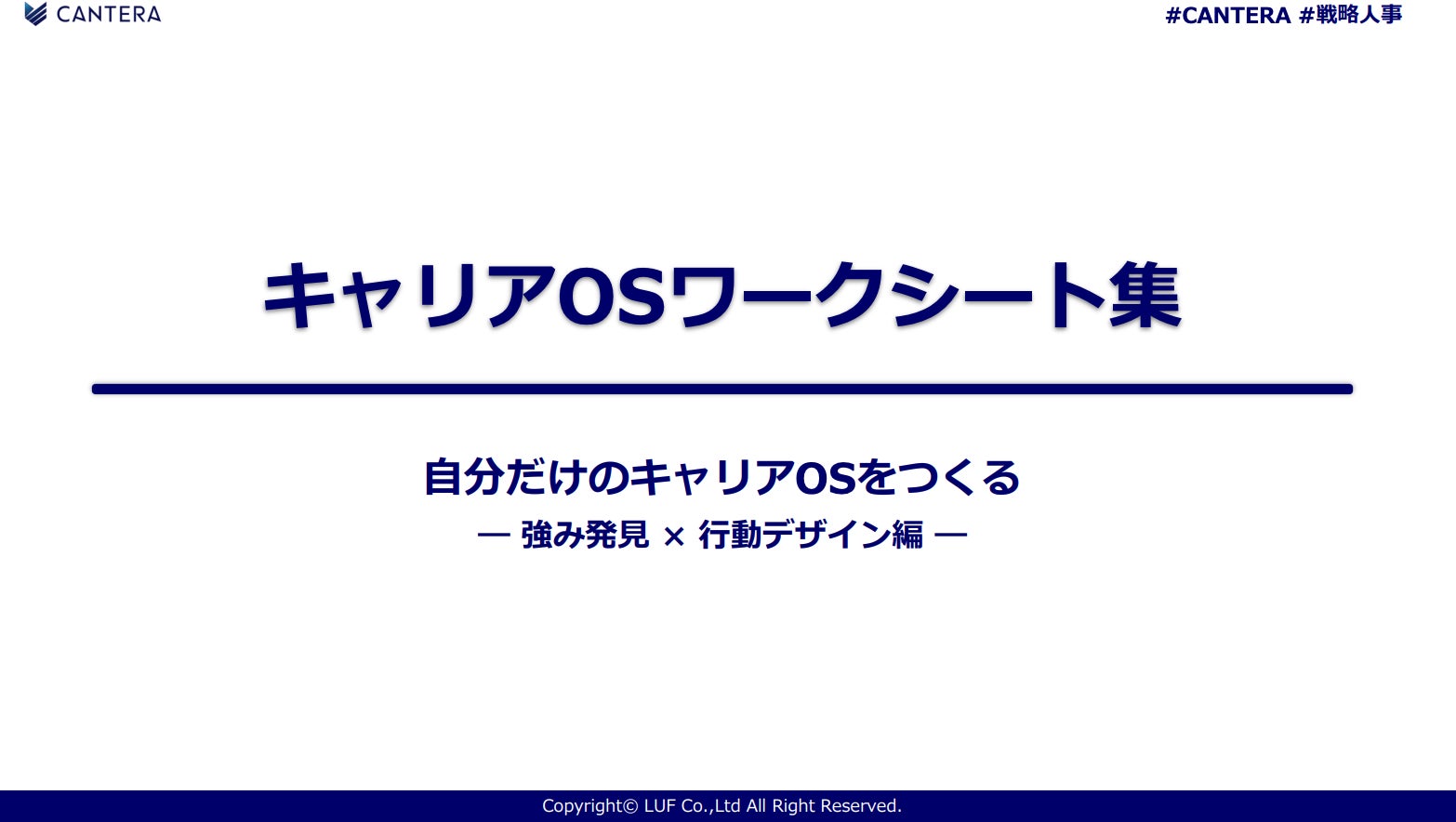 LUF株式会社(本社:東京都港区、代表取締役:堀尾 司)は、人事向けリスキリングプラットフォーム「CANTERA ACADEMY」にて先日公開し「自分のキャリアと初めて真剣に向き合えた」と大きな反響を呼んでいる人事向けキャリア設計講座『キャリアOSをアップデートする』の中から、実践編となる『キャリアOSワークシート集(全12シート)』を追加無料公開いたしました。