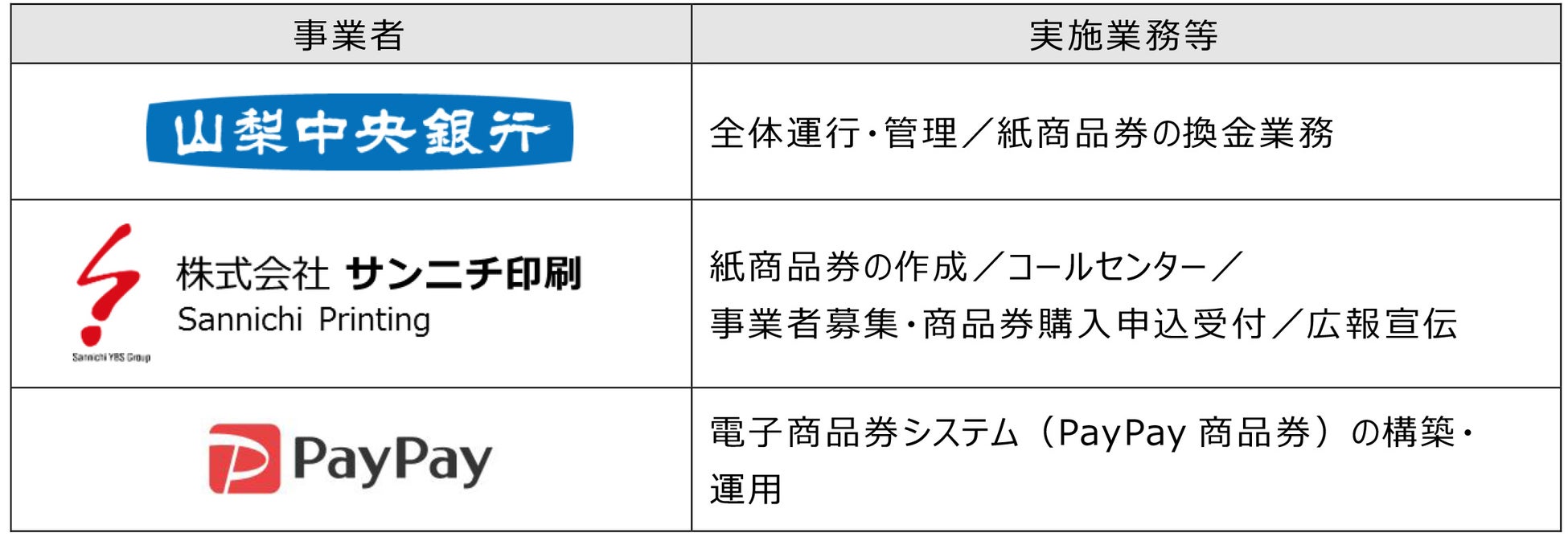当行は、PayPay株式会社、株式会社サンニチ印刷と協業し、電子商品券・紙商品券の発行、換金業務を行います。