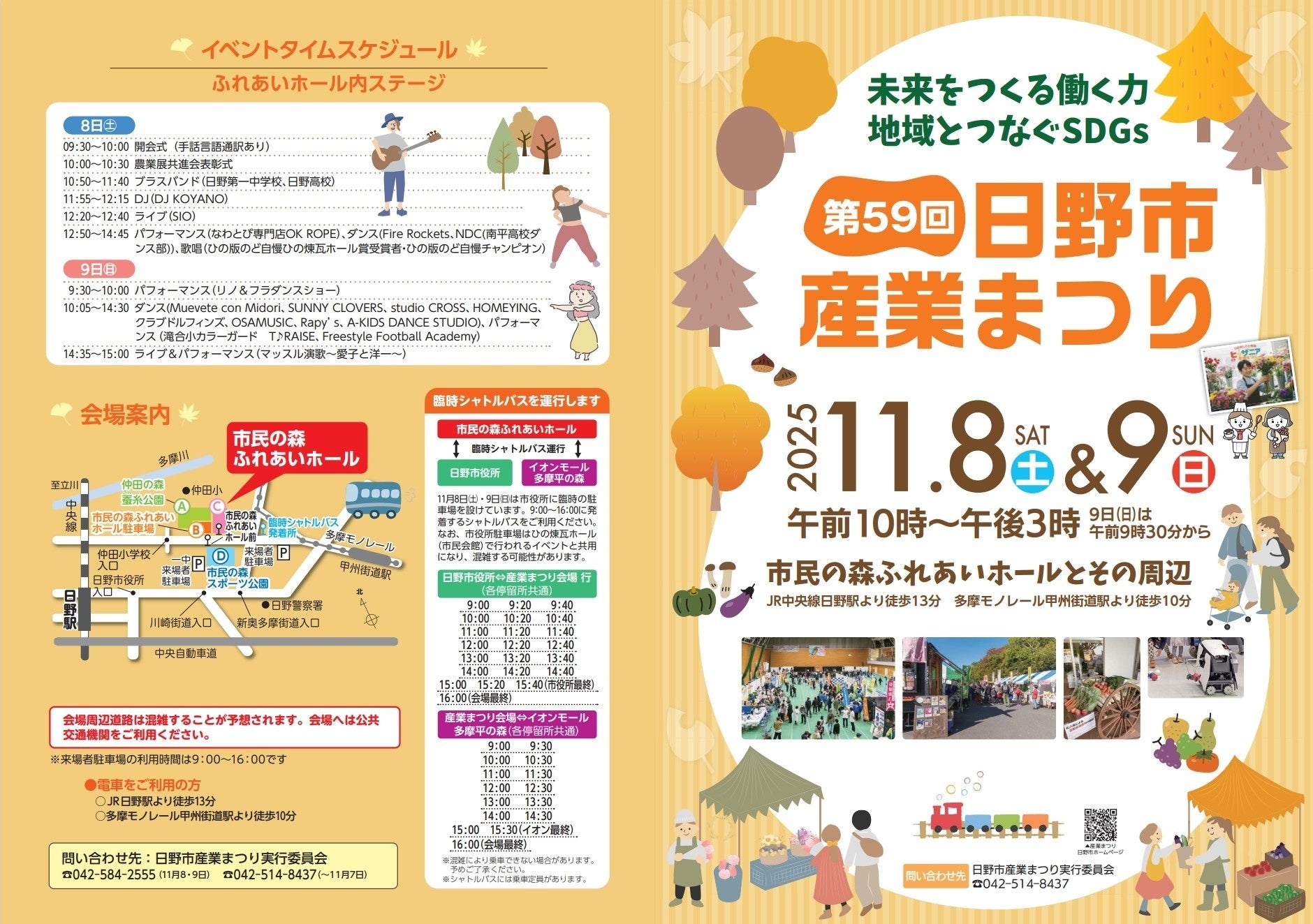 日野市産業まつりは、今回で 59 回を数える市内最大の催しです。