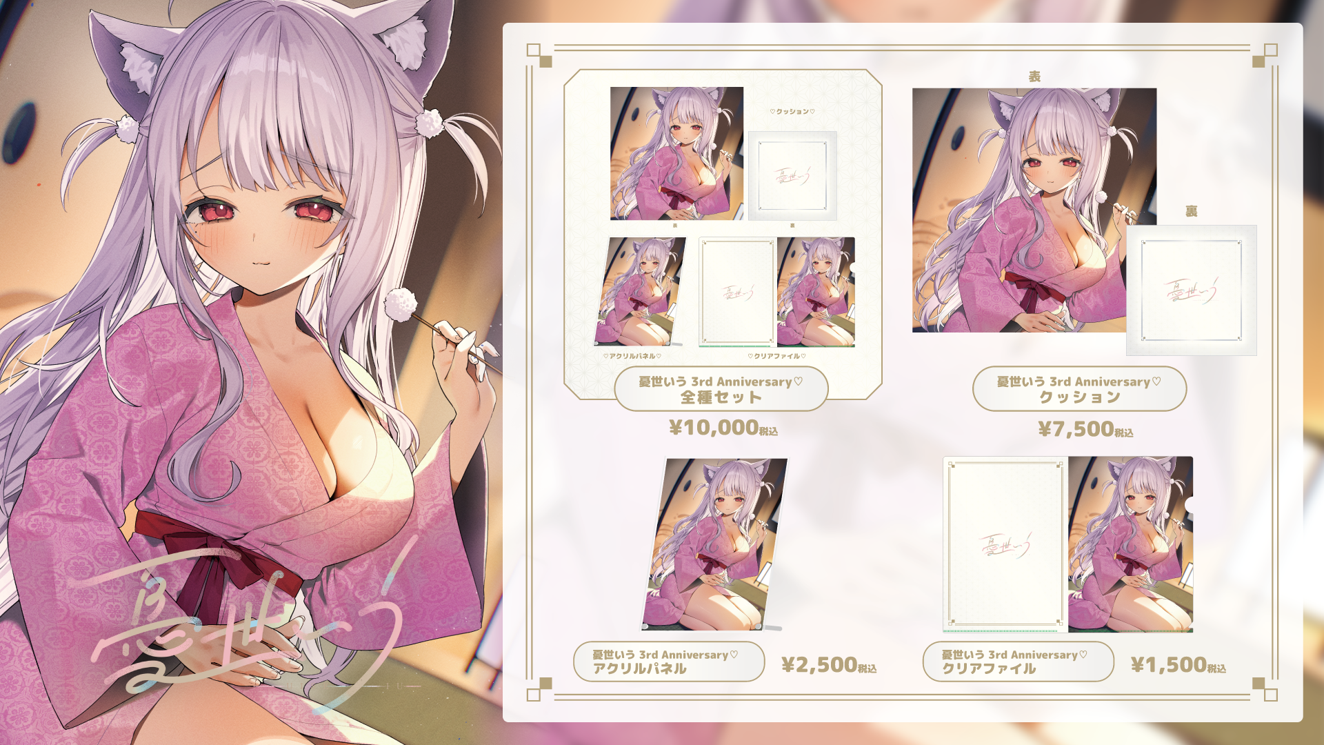 ASMRで人気のVTuber「憂世いう」3周年記念グッズが登場!描き下ろしイラストを使用した癒しのアニバーサリーアイテムを展開