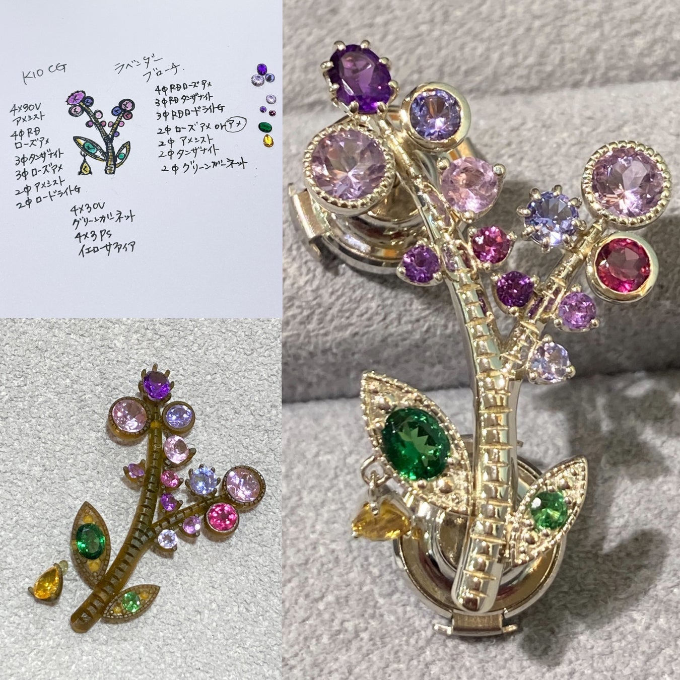 マルシェルースのお仕立てに適した、カスタムオーダー枠に新デザインが加わります。種類やサイズの異なる色とりどりの宝石を留めた、華やかで表情豊かなアイテムをご用意しました。