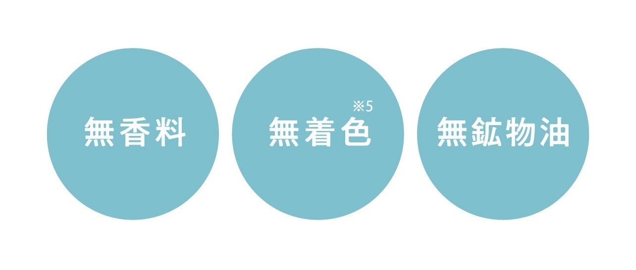 お肌のことを考えた無香料、無着色※5、無鉱物油。パッチ試験済み、アレルギー試験済みです(すべての方にアレルギー等が起きないというわけではありません。)