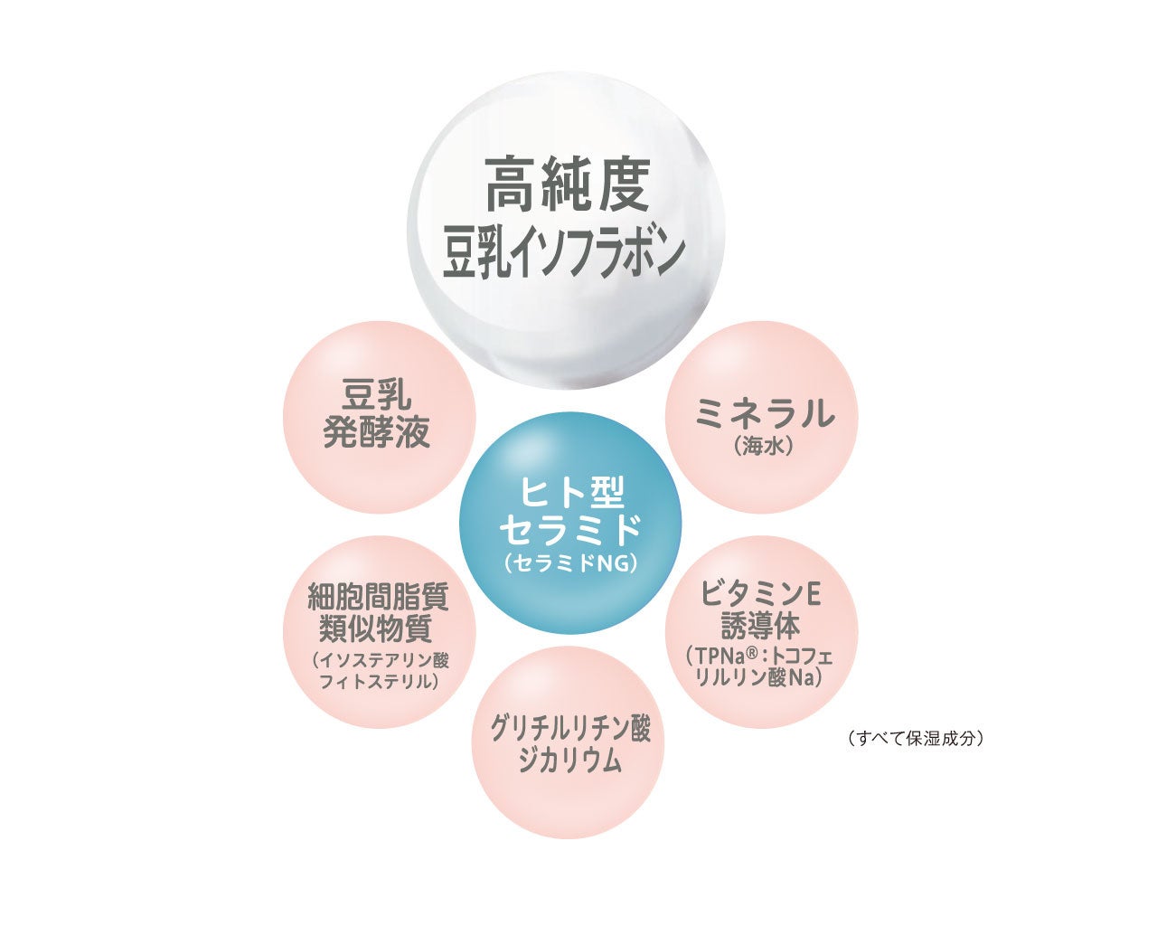 世界新開発*2の高純度豆乳イソフラボン※1を配合してリニューアルした保湿ラインです。