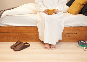 スマホやタブレットの充電に便利な電源タップを枕元に設置。