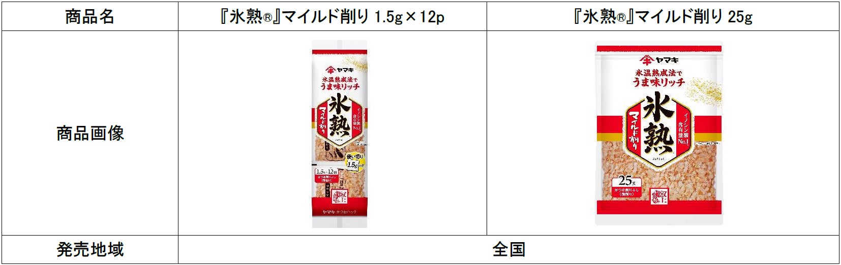ヤマキ株式会社(本社:愛媛県伊予市 代表取締役社長:城戸善浩)は、『氷熟®』シリーズの容量・価格を改訂し、「『氷熟®』マイルド削り1.5g×12p」と「『氷熟®』マイルド削り25g」をリニューアル発売します。