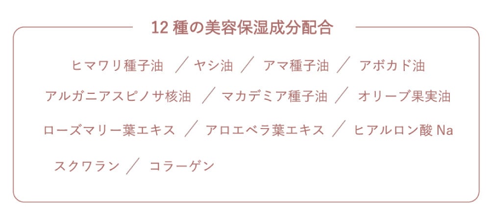 マカデミア種子油、オリーブ果実油、コラーゲンをはじめとした、12種類の美容保湿成分を配合した唇に優しいケア処方。 体温でなめらかに溶けて、ほんのり色付きながら、たっぷりのうるおいで唇を包み込んでしっかり保湿ケア。