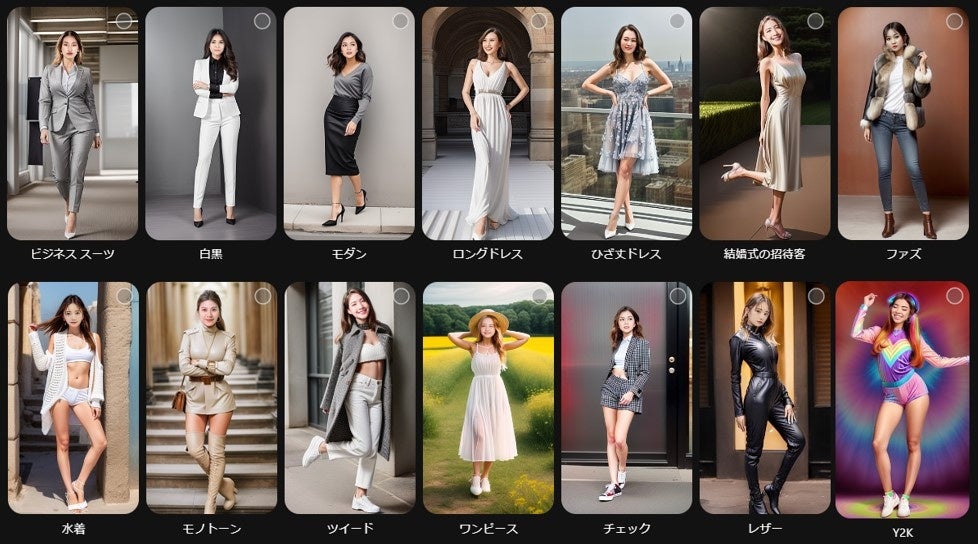 12種類(祭り、スパークル、セーラー服、ホラー、クール、ゾンビ、サクラ、学生、サッカー、鎧、サイバーパンク、軍隊)のスタイルを搭載。日本語で説明を入力して新しいスタイルで生成することも可能。